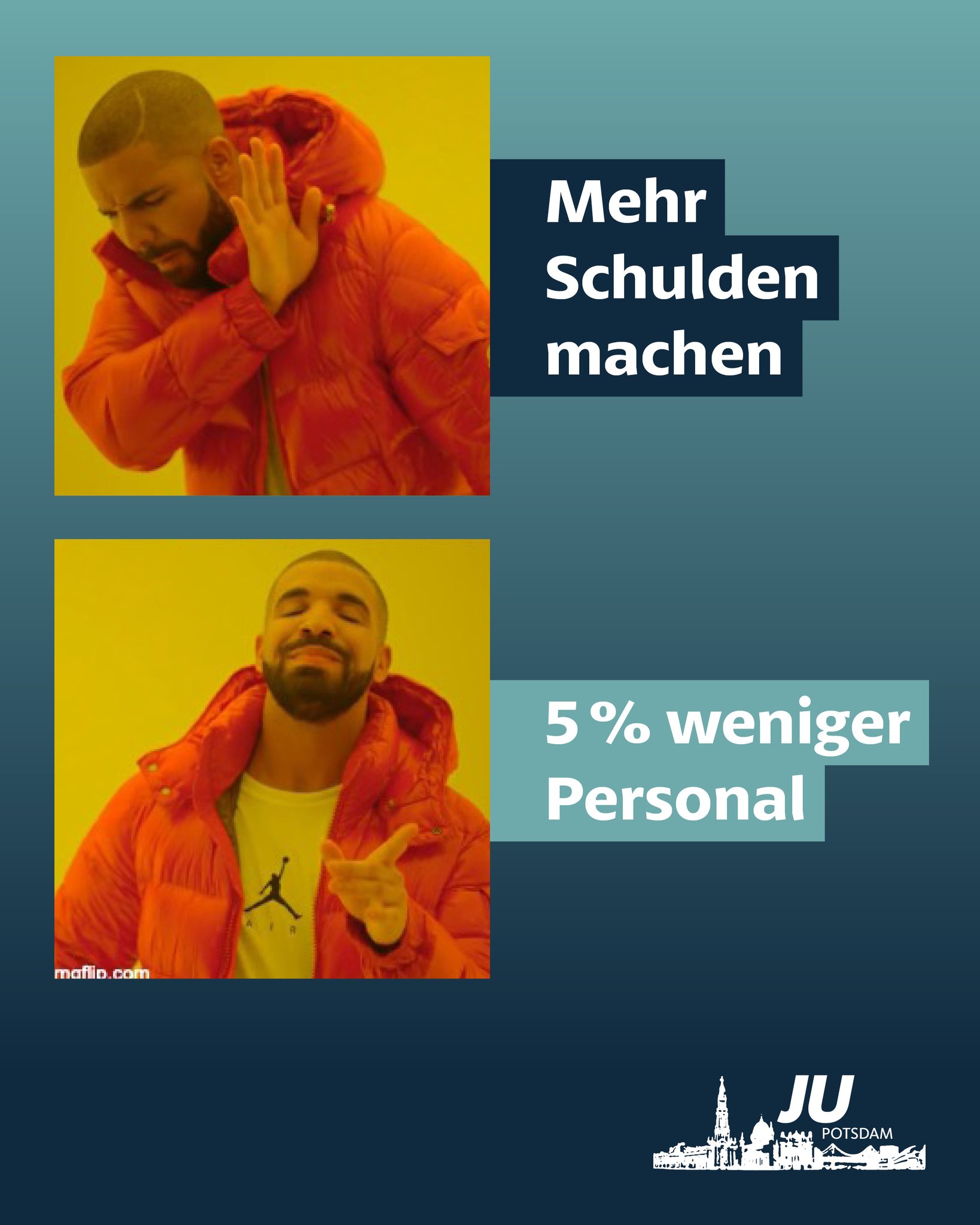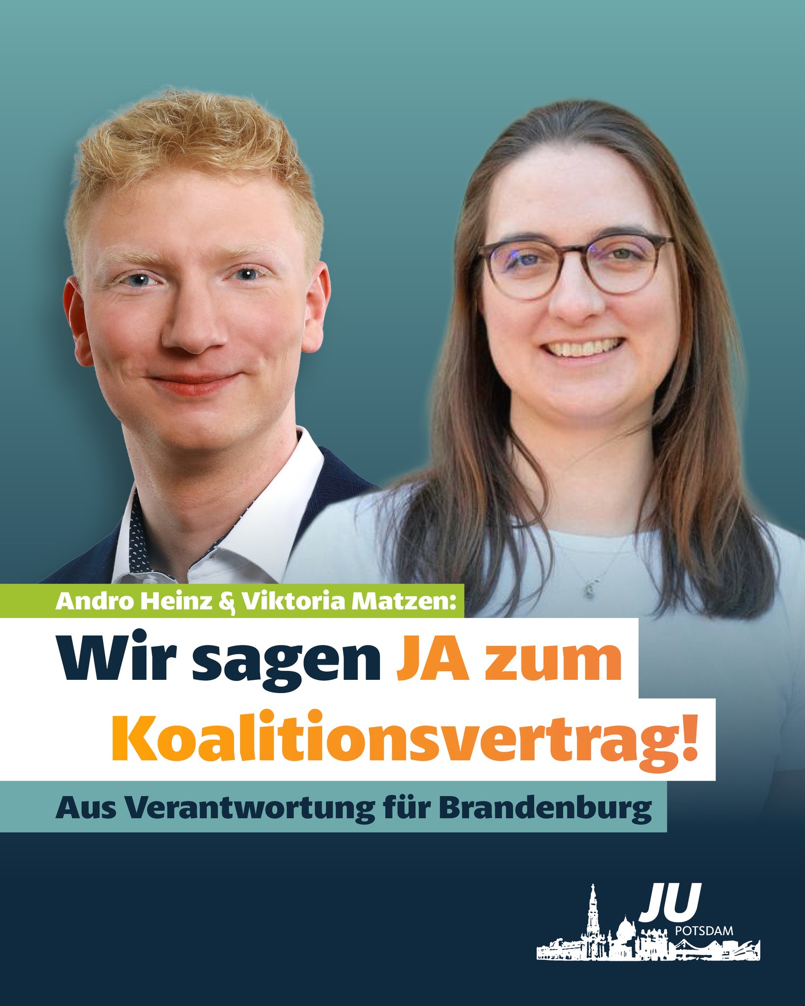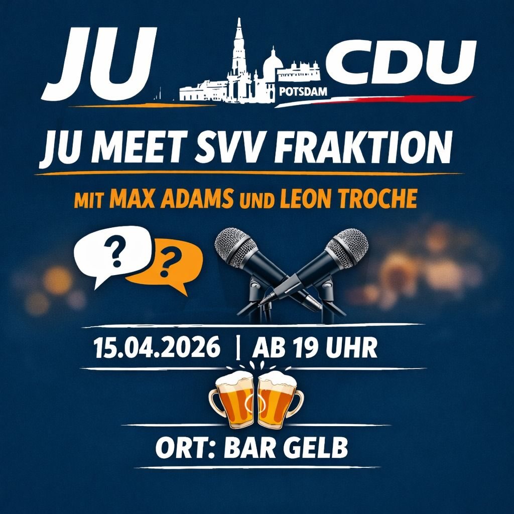 Als Junge Union Potsdam verstehen wir uns als Antrieb und kraftvoller Motor, aber auch kritische Stimme, einer ständigen personellen und inhaltlichen Erneuerung unserer Mutterpartei.